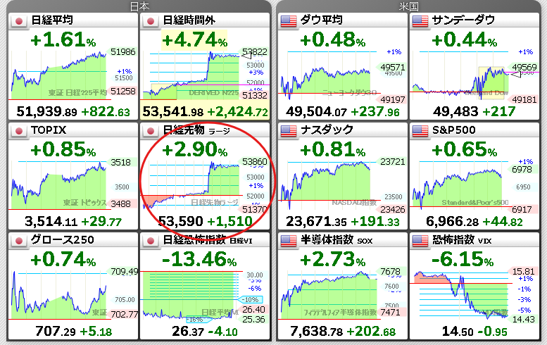 日経平均は金曜日に+822円と大きく上昇しているにもかかわらずそこからさらに+1600円