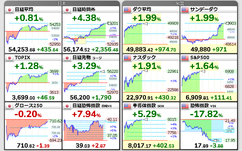 アメリカ時間に日経先物はじめ世界の株価が急騰中