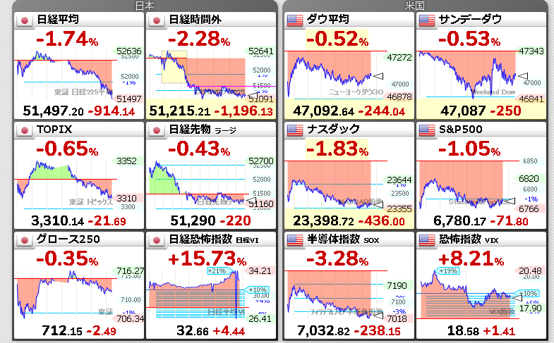 半導体指数の下落も大きく、ビットコインはじめ仮想通貨が暴落