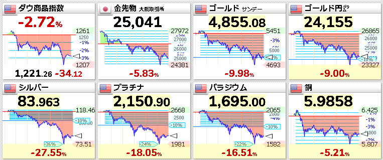 金、銀、銅、プラチナ、パラジウムが大暴落