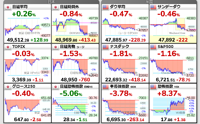 米半導体指数、オラクル、コアウィーブ、エヌビディア、グーグル、テスラ、パランティアなどが大きな下落
