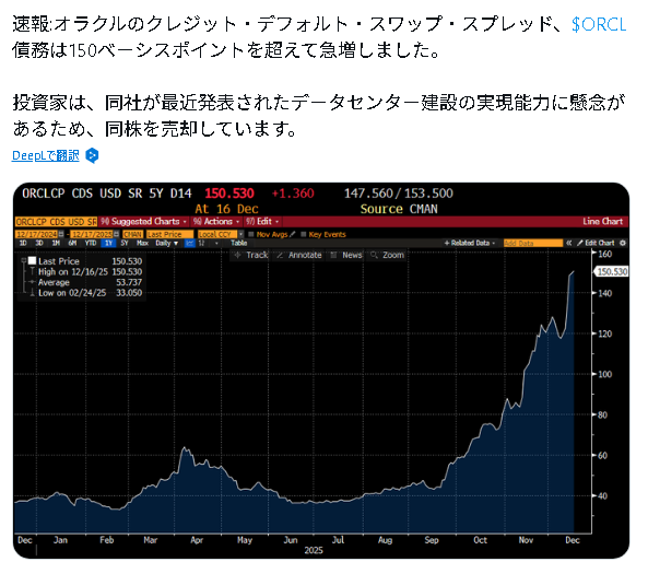 オラクル社、コアウィーブ社の借金に対する保険料が上昇している