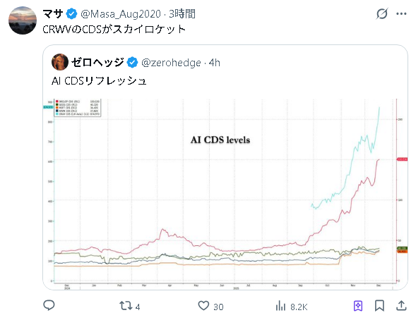 水色のラインがコアウィーブのクレジットデフォルトスワップの推移