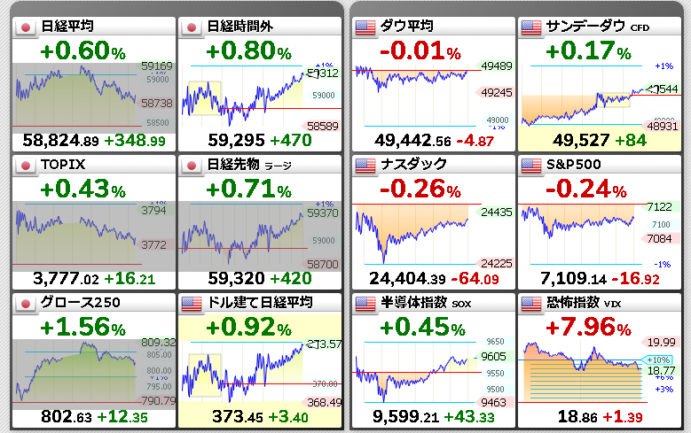 日経平均、TOPIX、グロース250指数すべてプラスだったが保有株はトータルマイナスとなる