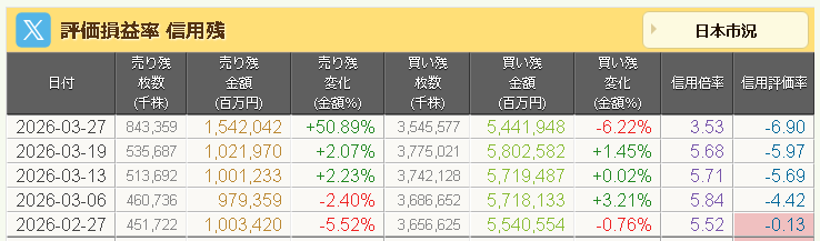 先週は信用買いの損切が一定数発生し、それでも含み損が少し増えた状態に見える
