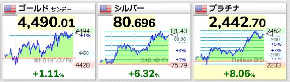 主力貴金属の金、銀、銅、プラチナ、パラジウムも上昇傾向