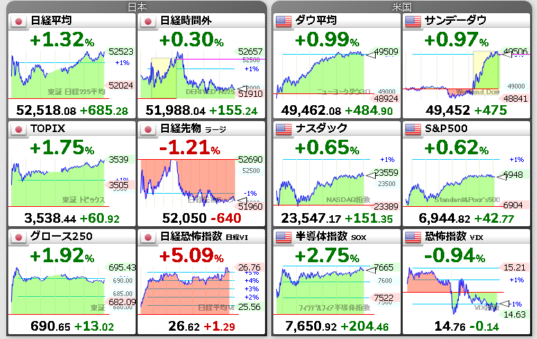 プライム市場値上がり1349銘柄、値下がり223銘柄と全面高