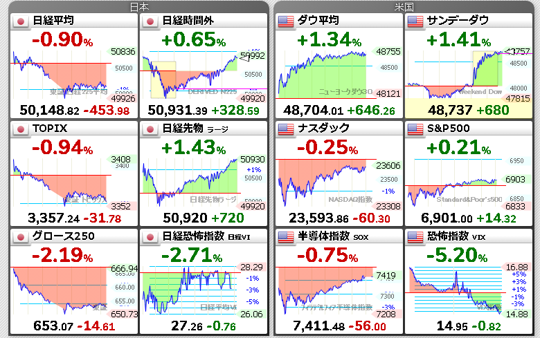 ただ、エヌビディア-1.55%、グーグル-2.43%、オラクル-10.83%、アーム-3.80%など生成AI関連はパッとしない銘柄もある(反発ぎみではある)
