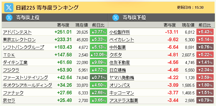 600円ほどは上位3社の上昇分 いつもの半導体上げ