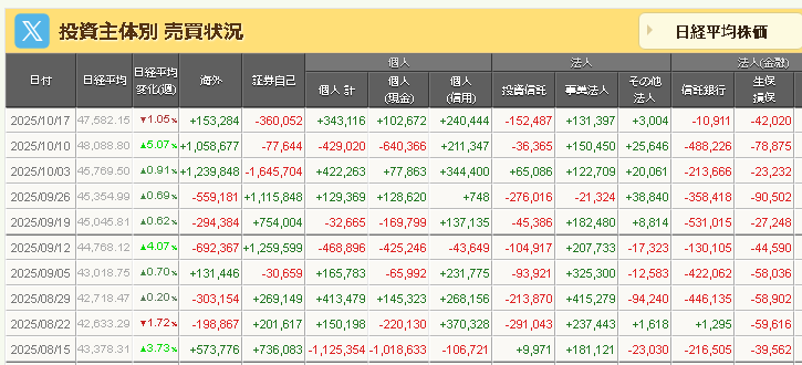 先週は個人が買っている 海外勢の買いは止まった感じ