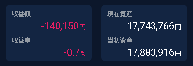 昨日の保有株は東洋炭素-5.15%、アクセルスペース-5.18%、リップス-3.54%、イントラスト-2.07%など