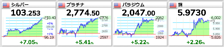 金、銀、銅、エヌビディア、マイクロソフト、メタ、アマゾンは上昇