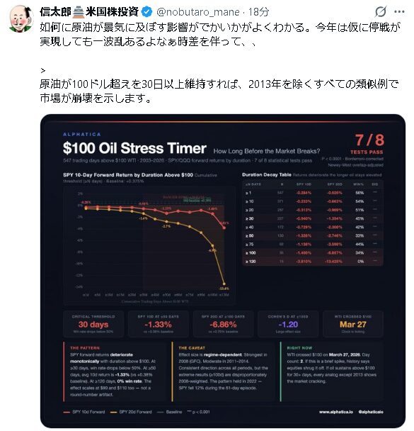 3/27日からWTI原油は100ドルを超えている 30日を超えると市場が崩壊するというデータがあるようだ