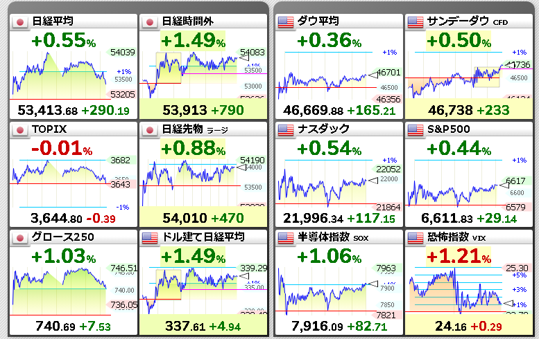 日経平均先物ミニ 売り×1✕53265円など(日経先物は別口座資金) 決済-9565円