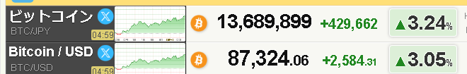日曜のビットコインは上昇 土曜日にテスタ氏5000万円分購入