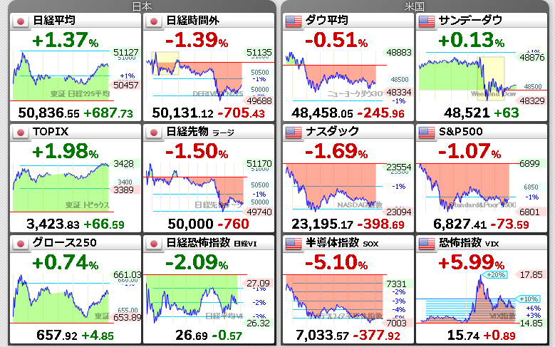 先週金曜日は半導体指数が-5.10%、銀、銅も大きめの下落(金は微上昇)
