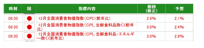 08:30 日本 全国CPI(消費者物価指数)12月→ガソリン・軽油減税がある