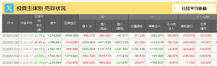次回出る投資主体別売買動向が衆議院選挙後の売買動向になる