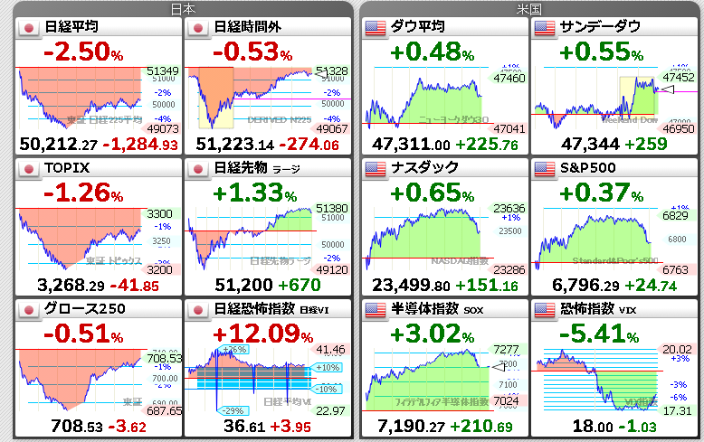 それでも引けは日経平均-1284円と大きな下げで引けた