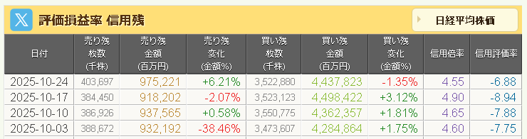 信用買い残が減って、信用売り残が増えて株価が上昇している