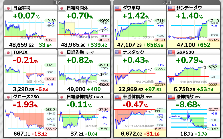 昨日のアメリカ株価指数はダウ、S&P、ナスダックすべて上昇中